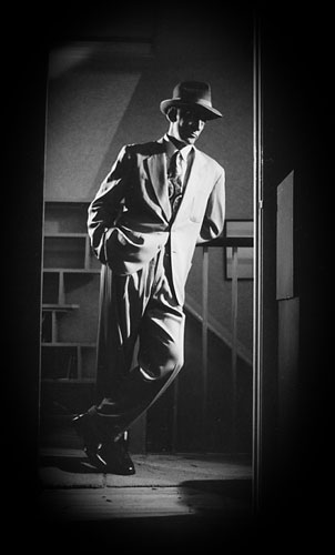 Film Noir is an inspiration for scene set shots, and similar lighting suits the exotic allure of Burlesque ,and smoky night-club musician photographs.